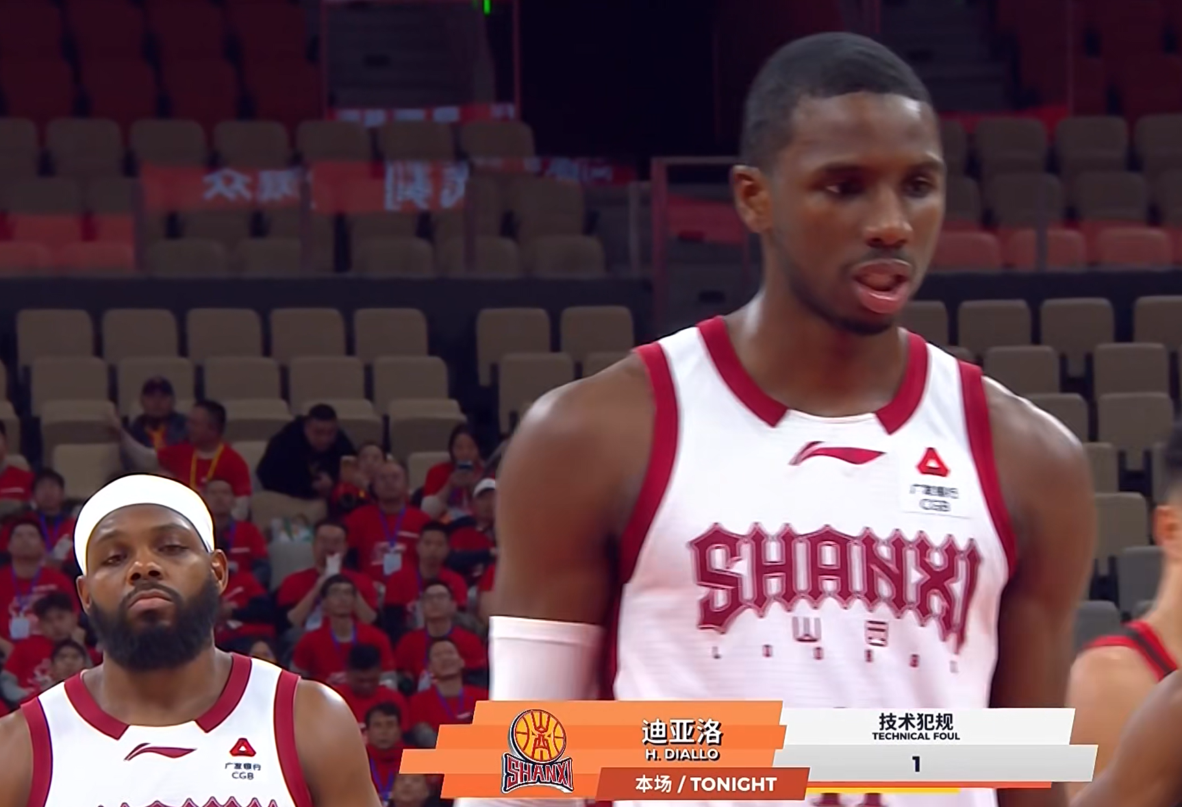 在第二节比赛,2分41秒时,迪亚洛持球突破上篮得分,然而,防守的贺希宁却被山西队球员葛昭宝推了一下,从而失去身体平衡,从而与迪亚洛有了身体接触。